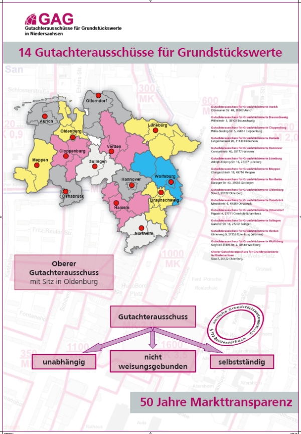 In Niedersachen bestehen 14 regional zuständige Gutachterausschüsse und ein landesweiter Oberer Gutachterausschuss als unabhängige Gremien. Unter Einhaltung des Datenschutzes leisten die Gutachterausschüsse wichtige Beiträge zum Verbraucherschutz auf dem Grundstücksmarkt und zur außergerichtlichen Mediation.
