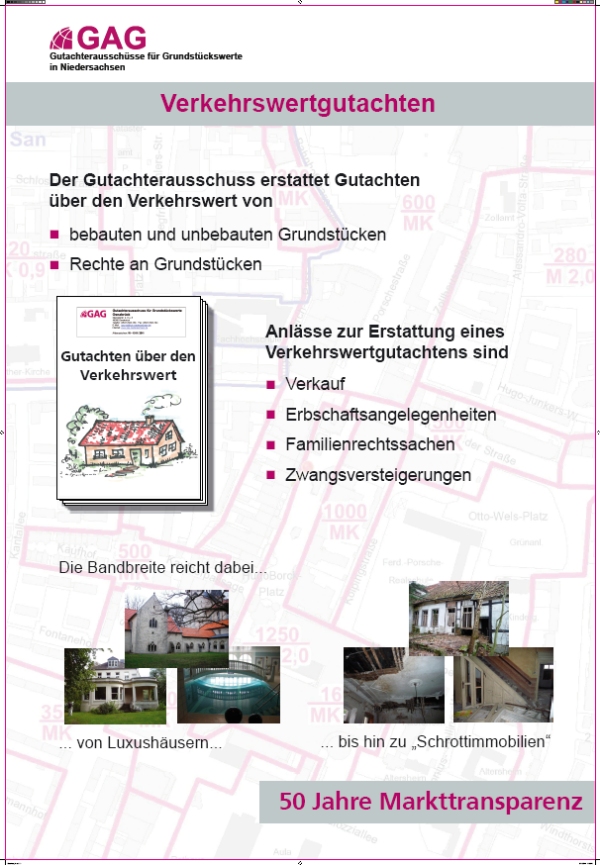 Die Gutachterausschüsse für Grundstückswerte sind in Niedersachsen 1961 bei den Katasterämtern eingerichtet worden. Sie sorgen seitdem für Transparenz auf dem Grundstücksmarkt.