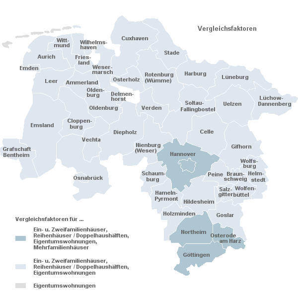Als Beispiel werden hier die vom Gutachterausschuss für Grundstückswerte Cloppenburg für den Bereich des Landkreises Cloppenburg ermittelten Daten für Ein- und Zweifamilienhäuser vorgestellt: